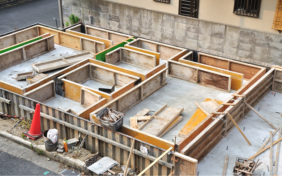 戸建住宅の基礎部分の鉄筋施工を行っています。住宅の土台となる基礎部分は、建物全体の耐久性を左右する重要な工程です。当社では、図面に基づいた正確な鉄筋の配置を徹底し、長期間にわたり安心して住める住宅の基礎づくりをサポートします。